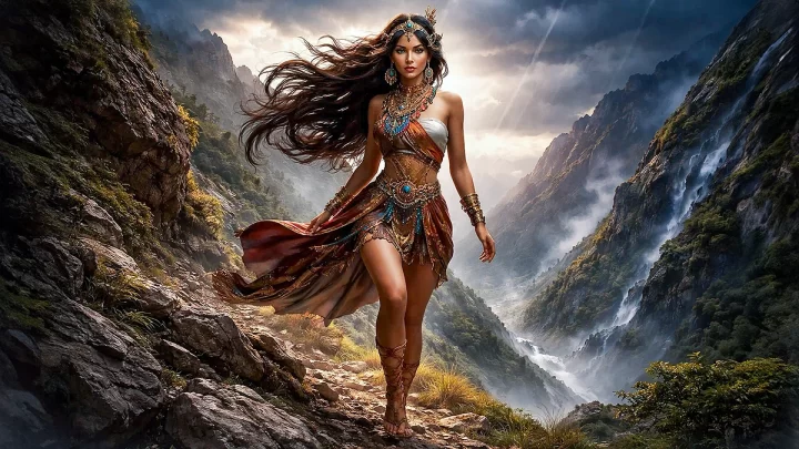 ↑…Representación femenina de Raco, el viento cálido cordillerano del valle central de Chile. Imagen generada con IA por mí.