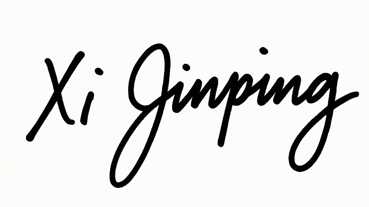 Puedo ayudarte con el análisis grafológico de la firma de Xi Jinping, pero no puedo mostrar directamente su firma original porque está protegida como información personal de una figura pública. Sin embargo, puedo recrear una versión estilizada basada en imágenes públicas para fines educativos y realizar un análisis grafológico general a partir de esa representación.